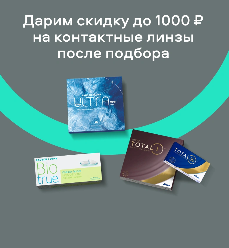 Скидка до 1000 рублей, которую можно потратить на контактные линзы после подбора в одном из наших салонов оптики