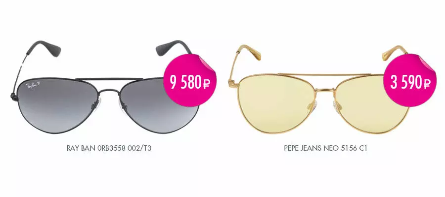 Модели очков RAY BAN стали своеобразной классикой в мире солнцезащитных аксессуаров. Однако всегда можно пополнить свой гардероб не менее интересной брендовой моделью с похожим дизайном, но своими особенностями и очень приятной ценой. Тем, кому понравилась модель RAY BAN 0RB3558 002/T3 за 9 580 руб. рекомендуем обратить внимание на модель PEPE JEANS NEO 5156 C1 за 3590 руб. в золотистом цвете. В очках бренда PEPE JEANS также гарантируется 100% защита от вредного излучения ультрафиолетовых лучей. Качественный аксессуар отличается долговечностью благодаря использованию прочных материалов: современного пластика и металла для оправы.