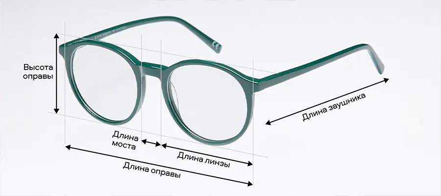 Очки — не только стильный аксессуар. От их размера зависит ваше самочувствие. Поэтому так важно правильно определить ширину оправы, моста, длину заушников, высоту линз и другие параметры.