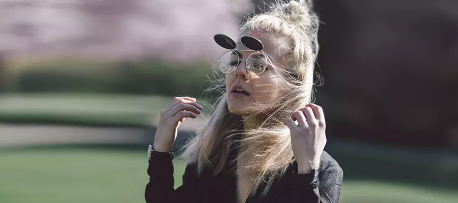Чаще всего встречается модель flip-up с круглыми стеклами в стиле ретро. Она смотрится очень круто и на женщинах, и на мужчинах, с легкой перчинкой «oldschool», перенося нас на несколько мгновений в прошлый век. Прямоугольные вариации так же встречаются, но в существенно меньшем количестве.