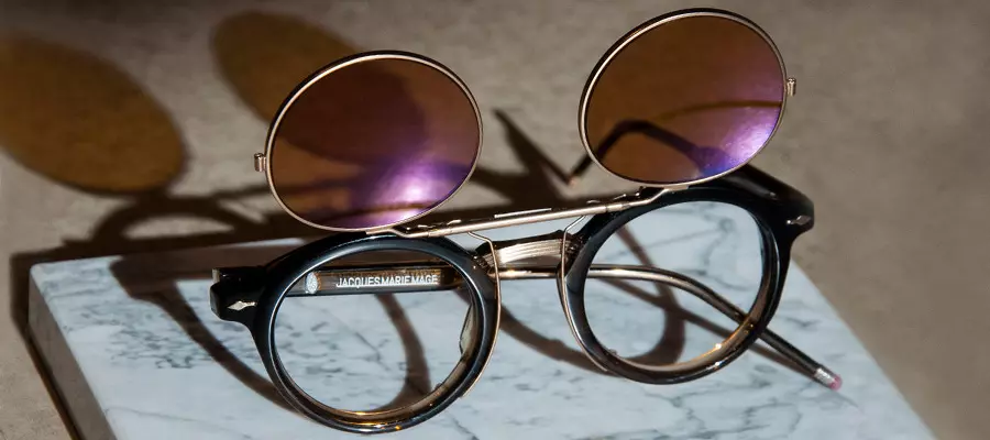 Одна из вариаций двойных очков – модель click-on. Она представляет собой съемную накладку из двух линз без заушников, крепящуюся к основной оправе либо магнитами, либо особым механизмом на шарнирах. Так, вы можете постоянно снимать и доставать свои защитные очки при необходимости. Двойные очки click-on нужно обязательно хранить в футляре, желательно двойном – чтобы основная конструкция и съемная не царапались друг о друга.