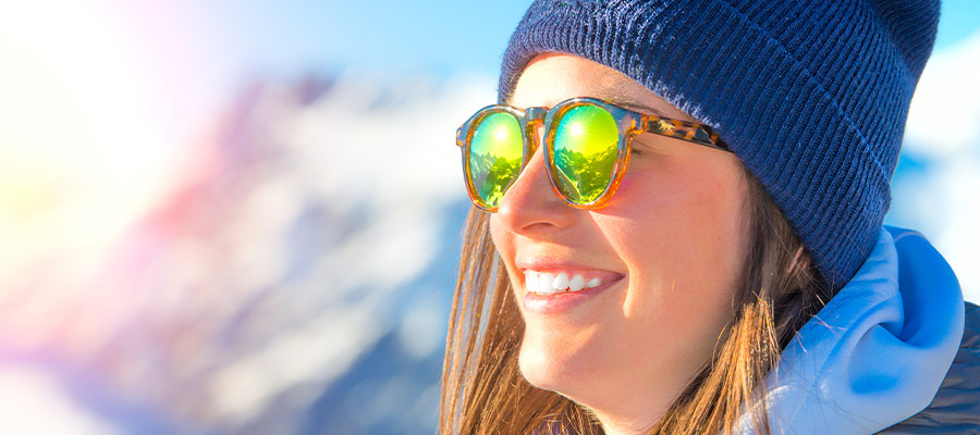Снег отражает солнечные лучи, поэтому пребывание на улице в ясные зимние дни без солнцезащитных очков может быть неприятным и даже опасным. В горах, где снега больше, а солнце светит ярче, защита глаз от ультрафиолетового излучения становится еще более важной. Без такой защиты вы рискуете получить ожог глаз — явление называется снежной слепотой. Это ожог роговицы или конъюнктивы глаза, вызванный воздействием ультрафиолетовых лучей. Симптомы снежной слепоты включают резь и боль в глазах, помутнение зрения и высокую чувствительность к свету.