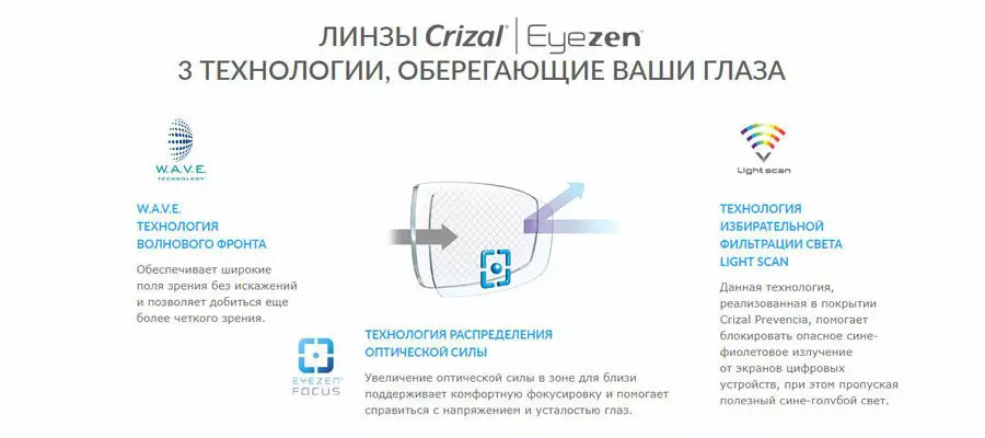 В салонах оптики «Очкарик» представлены линзы с поддержкой аккомодации марки Crizal, французской компании Essilor.
