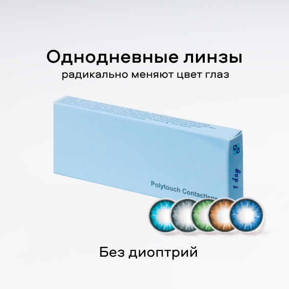 Цветные линзы — это разновидность контактной коррекции, которая позволяет одновременно корригировать зрение, а также менять или усиливать натуральный оттенок радужки. Распространённое убеждение, что ношение цветных линз опасно для глаз, не соответствует действительности. Современные модели изготовлены из безопасных материалов, а цветные пигменты встроены внутрь полимерного материала линзы и не контактируют с роговицей глаза. Поэтому можете быть спокойны, линзы абсолютно безопасны, но требуют соблюдения правил ношения и хранения — если они плановой замены.