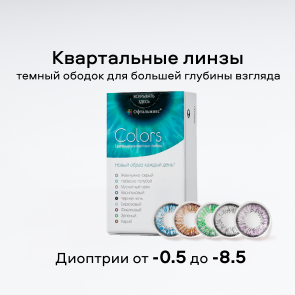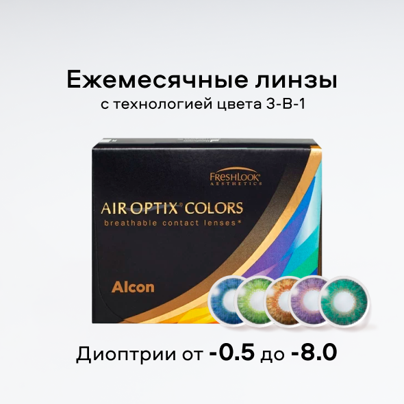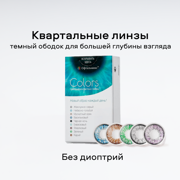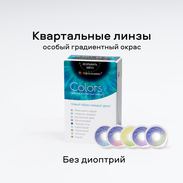 Цветные линзы перестали быть только средством коррекции зрения. В каталоге «Очкарик» можно подобрать линзы для повседневного образа или яркие модели для особых случаев. Широкий выбор брендов позволяет подобрать оптимальный вариант по цене и качеству. У нас каждый может купить цветные линзы для глаз или контактные линзы с диоптриями с учётом индивидуальных особенностей зрения. Ждём вас в наших магазинах для подбора модели и консультации со специалистом.