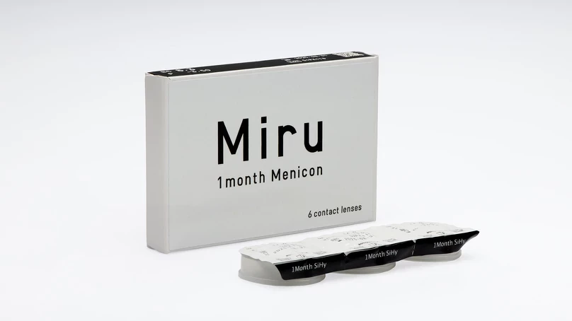 Ежемесячные контактные линзы Miru 1month от Menicon продаются в удобной упаковке по 6 блистеров.