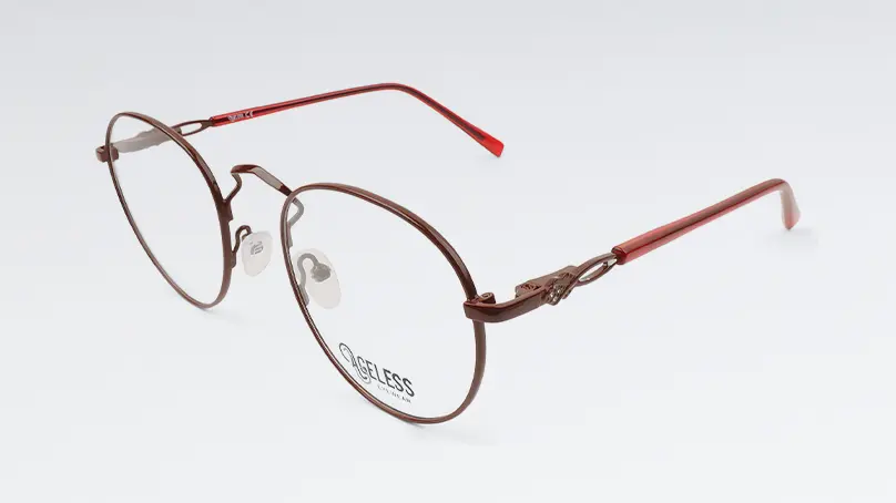 Оправа AGELESS 510818 KM04 круглой формы в бордовом цвете. В интернет-магазине «Очкарик» представлен широкий ассортимент оправ. Металлические и пластиковые, однотонные и цветные – мы всегда в курсе актуальных тенденций и предлагаем исключительно трендовые модели на любой вкус. Мы заинтересованы в безупречном качестве наших оправ, поэтому сотрудничаем с ведущими брендами с мировым именем и идеальной репутацией. Мы предлагаем услугу бесплатной примерки, оставляя за вами возможность полностью отказаться от заказа, если вам ничего не подошло, и выбрать в нашем интернет-магазине другие модели оправ. Проверить зрение и подобрать линзы вы всегда можете в наших салонах оптики – для покупателей услуга бесплатна.