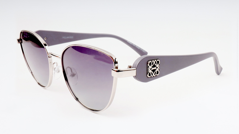 Солнцезащитные очки BELLESSA формы «кошачий глаз» в серебристой оправе с фантазийными заушниками станут ярким акцентом вашего образа.