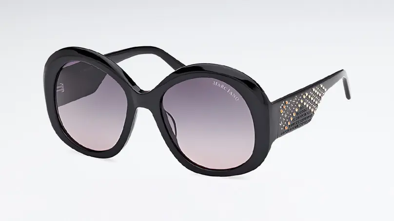 Солнцезащитные очки Guess by Marciano с яркими декорированными заушниками не дадут затеряться в толпе.