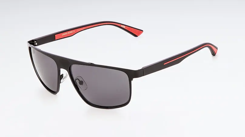 Солнцезащитные очки с красными вставками на заушниках настроят ваше настроение на спорт.