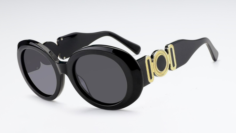 Крупные черные очки Trendy с эффектным золотым декором на заушниках.