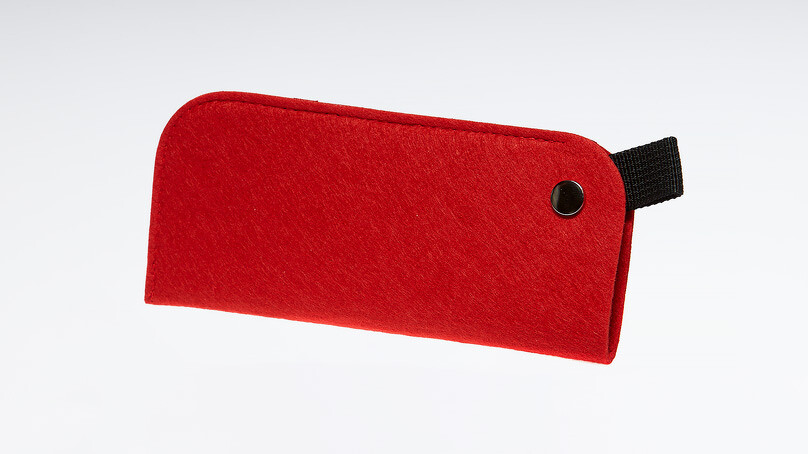 Красный футляр для очков отличается высокой прочностью и полностью оберегает их от повреждений.