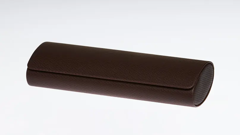 Коричневый футляр для солнцезащитных и корригирующих очков отличается прочностью и полностью защищает их от царапин.