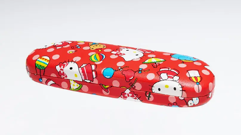 Красный футляр для очков отличается современным дизайном и полностью защищает их от царапин.