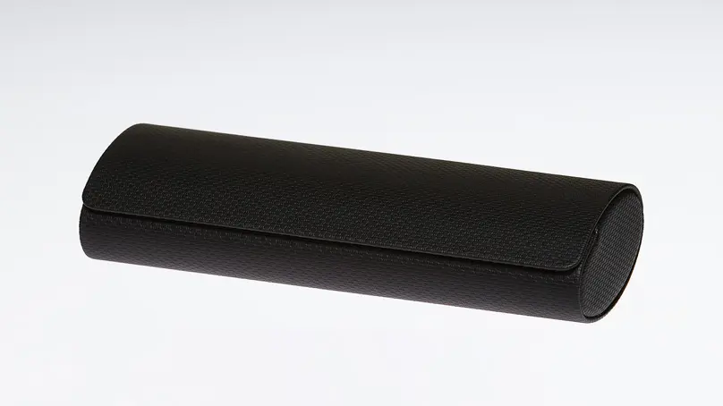 Черный футляр для солнцезащитных и корригирующих очков отличается современным дизайном и надежно оберегает их от повреждений.