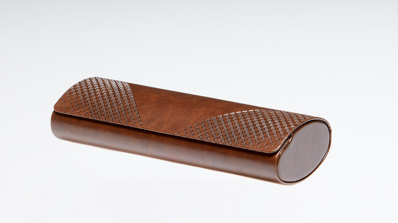 Коричневый футляр для корригирующих и солнцезащитных очков отличается современным дизайном и полностью оберегает их от повреждений.